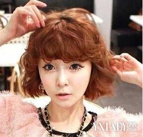 圆形脸女生适合的金黄色短卷发,蓬松的两侧灵动可爱,弧度俏皮有很自然。微带卷度的刘海温柔可人,让双眼更加水润明亮,同时又凸显了迷人的小脸型,金色的染发将肤色衬托得红润白皙。搭配蕾丝的白色洋装娇媚迷人!