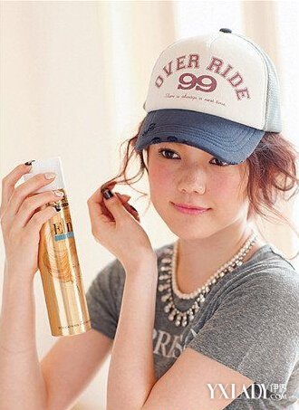 3、戴上鸭舌帽。随意拉出侧边几缕发丝,喷上定型剂保持碎发造型,加以轻微搓揉增加凌乱感。