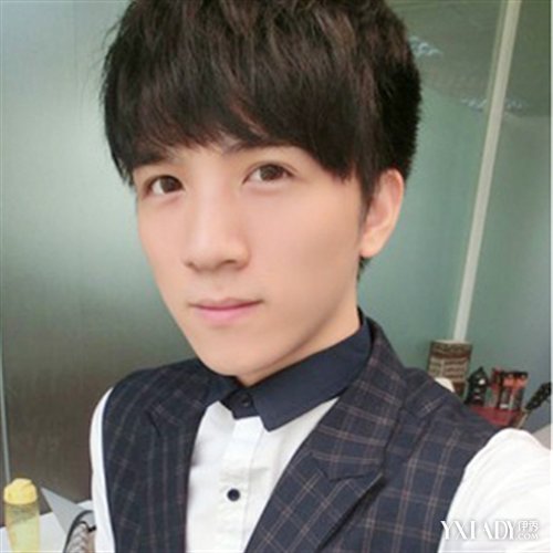 齐刘海是萌系发型中的一大主流,长脸男孩,碎剪的刘海,自然微烫设计,深色染发多了一些沉稳内敛气质,整体散发出潇洒帅气男神范。