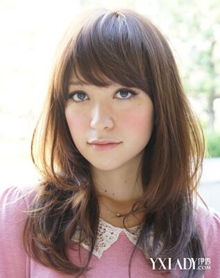 修剪弧度恰当的齐刘海微微倾斜,有拉长脸型的效果,两鬓的头发自然垂落,恰到好处的修饰脸部线条,给人巴掌脸的视觉感受,发尾的内扣设计让女生整个脸型都显小了。