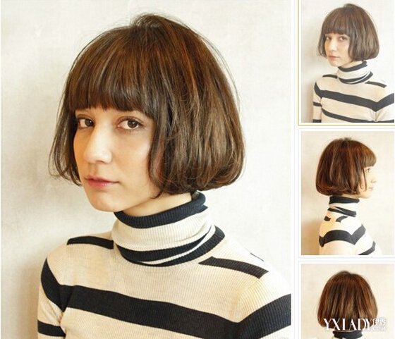 将刘海剪平,没有层次感的厚重波波头显露出英伦风的效果,更有成熟的时尚感,还能将脸变小,人气爆表。