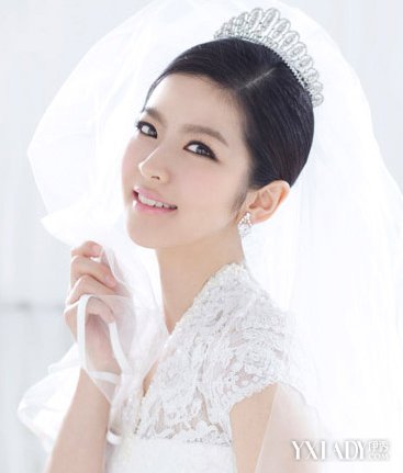 侧分长发整齐服帖的贴合在脑袋之上,露出柔和清晰的发际线,精致的脸蛋一览无遗,再加上一个水晶桂冠,高贵端庄。