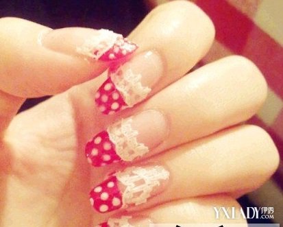 4、纯白蕾丝美甲纯白的蕾丝一下子就增加了你的气质,这款美甲涂上之后一定更具有女神气质了,乳白色的甲油十分诱人,除了其他的几个法式美甲外,还在其中两个指甲上画上蕾丝图案,很有韵味。