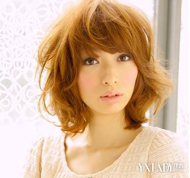 如阳光般温暖的头发颜色衬托女生白皙的皮肤,凌乱的短卷发以丰富的层次打造丰盈感。