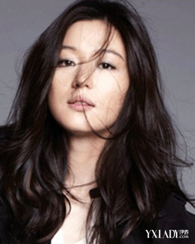 很有大牌气场的一款凌乱发型设计,长发简单扎发,额前的长刘海和鬓发吹起打造出凌乱飘逸的效果,很有清新的知性气质。
