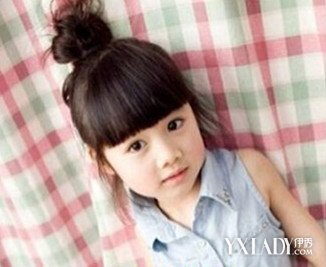 无刘海的一款儿童年的中长发发型的扎法,把头发梳理到头顶上面,这样就形成了一款无刘海的小丸子头发型了。特别可爱。