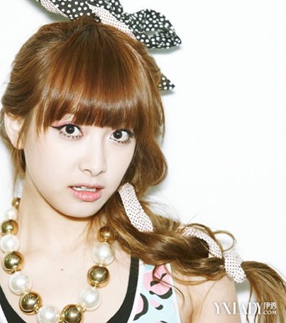 用发带连带栗色头发一起侧梳成麻花辫,随意起来不乏个性,波点发箍搭配亮丽秀发显得可爱又俏皮,亲和力十足。