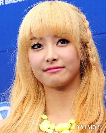 金色染发能够突显健康的小麦色肌肤,令宋茜变得甜美可爱,一条小小的麻花辫子作为装饰,让造型增加可爱感。