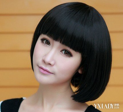 个性俏皮可爱的女生齐刘海的波波头直发发型,是一款很是俏丽干练的圆脸女生的齐刘海直发发型选择。