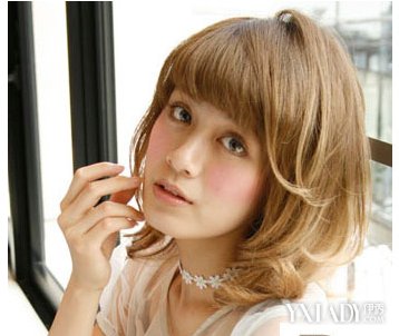 齐刘海短发梨花烫发型,齐肩短发清爽迷人,发尾亚麻色的渐变,显得时尚好看。