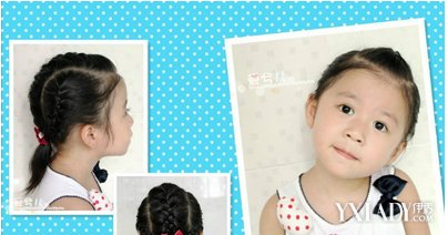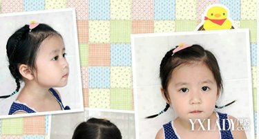 简单的马尾扎辫扎法,细细的头发随意的摆弄,外翘的发尾特别俏皮,配上粉色的发卡,天真童趣。