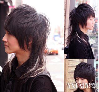 前卫的接发发型设计,潮流时尚,长长的刘海,把额头完全的遮住。向后别去的长发髻,把脸颊修饰得尖闰秀气。散在肩背的长发,接入一根根的白色发丝,呈现出个性而时尚的型男气场,肤色白皙的男生合适。