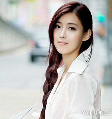 酒红色的长直发轻轻地拢至一侧编成麻花辫,侧脸轮廓完美展现,而耳侧的几丝碎发慵懒随性,自然地就是最好的!