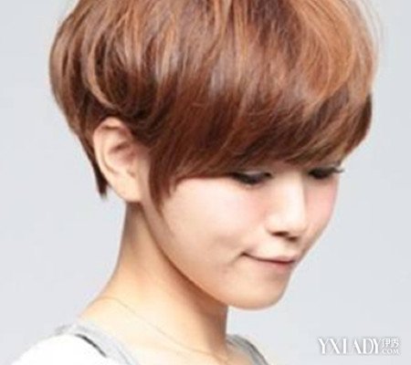 有点类似BOB头的超短发采用“一”字的剪法打造超短的齐刘海是不是超靓丽又耀眼呢!完美呈现出时尚达人的秀气五官。发尾部分采用男生发型上常用的铲发方法,使这款女生超短发瞬间流露出男生的英朗帅气气息,体现出女生超有个性又前卫的思想观念!
