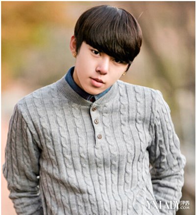 厚重的男生蘑菇头发型,加上齐刘海的发型设计,打造一款减龄修颜的气质潮男短发造型,同时还完美展现一张帅气的小脸。