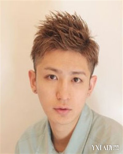 短碎的头发用发蜡往上造型,发束感分明,很神清气爽,两侧发际推高很是利落,是很流行的男生发型设计样式。