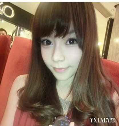 7.对于很多大姐姐类型的淑女们来说,如果选择一款非常有朝气的棕红色染发肯定不错,下面这款齐刘海长发就很适合淑女们,厚实的齐刘海,展出你最稳重的气质,还极好的修饰脸型呢,整款发型看起来魅力四射哦,很有美感。