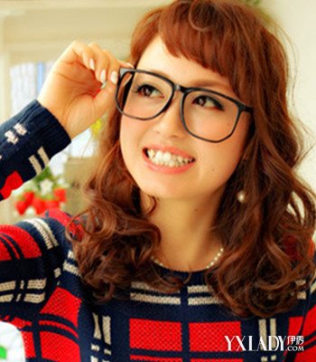 鲜亮的发色首先能吸引注意力,搭配内扣的短刘海,散发出活泼的气质,而有层次的内发束很好地修饰了脸型,戴上大镜框更显可爱。