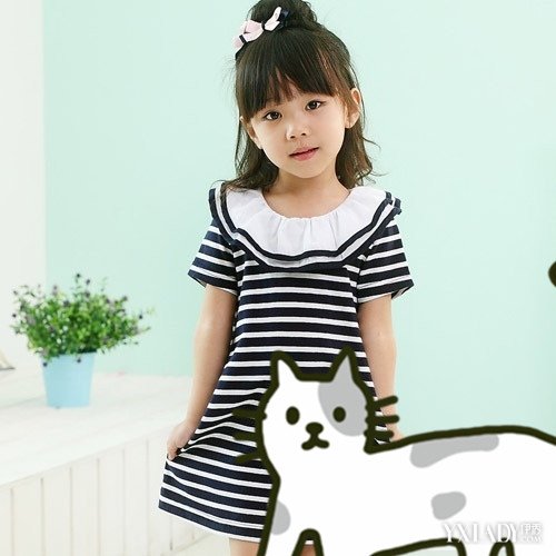 将小女孩的中短发扎成了两个小发髻,尽显小女生的可爱活泼,整齐的刘海设计,很好的修饰了小女孩的脸型,发髻上点缀了两个好看的发饰,尽显粉嫩可爱。