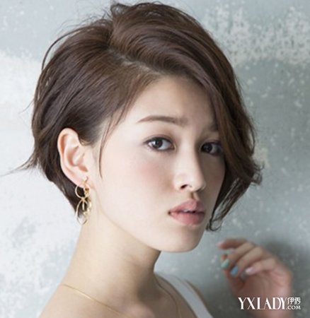 这一款简单清爽的短发发型设计打造出别致的时尚感来, 而且帅气的斜刘海短发勾勒出无比的时尚感来,整个造型颇为时尚而且清爽。
