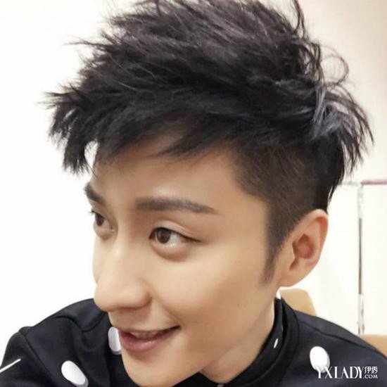 时尚的男士发型设计,中间是个性的定位烫发,清爽的露额发型设计显露出别致的时尚感来,两侧剃短摆脱了累赘感,颇显阳光。