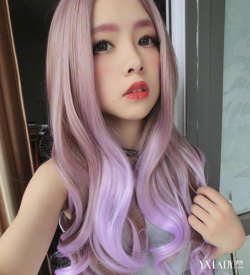 这款渐变发色发型很适合留中长发发型的妹纸,披肩的齐肩长卷发打理出层次感,飘逸的卷发搭配紫色的渐变,更是亮眼吸睛。