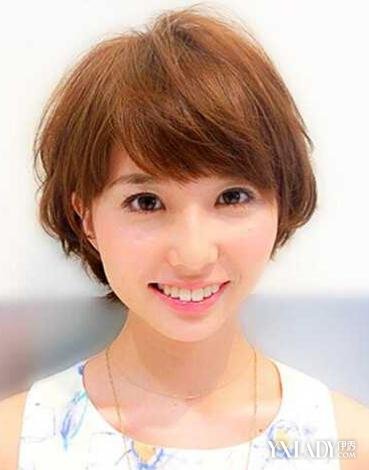 第三款:斜刘海内卷短发微微斜分的刘海露出一小部分的额头和眉眼,从视觉上拉长脸部线条,齐耳的短发烫出蓬松内卷的效果,修饰脸型之余,更显得利落大方,清爽可人,棕色发色时尚吸睛,凸显出女生的白皙肤色。
