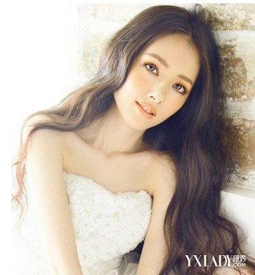 精致气质的甜美系裸妆,搭配这款中分的中长发波浪卷发设计,是2015年流行的时尚发型选择之一。