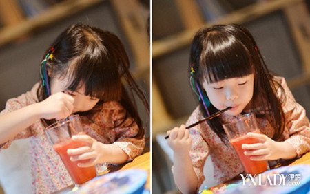 圆脸小吃货看的心都化了,萌萌的齐刘海长发,在两旁用彩色的皮筋编起来,时髦又甜美吸睛。