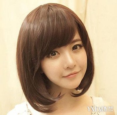 这款浪漫时尚的巧克力色柔顺发丝散发出迷人的金属光泽,时尚短发波波头发型发尾采用独特的内扣设计完美的勾勒出精致的小脸,倾斜的刘海更添清新脱俗的淑女气质。