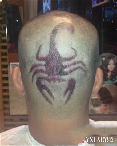 男式雕刻发型第三款,喜欢蝎子的你,不妨就这样简单的在寸头发型上,雕刻成一个蝎子形状,走在大街上,回头率怎么不百分之百。