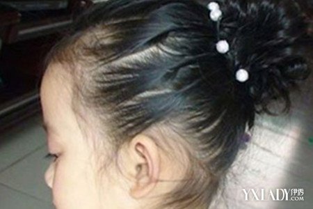第五步:最后,在丸子头的收口出用蝴蝶结发梳来装饰一下,如果丸子头发型不够固定,还可以用黑色的小夹子帮忙。