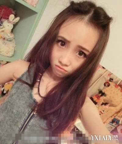 很可爱的一款中长发型,将简单的中分打造出很别致的感觉。简单的将刘海别出猫耳发型的样子,活泼可爱。尽显小女生的一面。