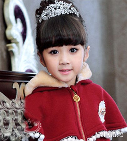 这款宫廷风的盘发造型,再现了经典赫本头,小学生圣诞舞会,化上美美的妆,齐刘海高发髻,发冠立添高贵气质。