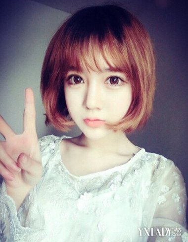 强烈建议短发美眉尝试一下这款韩式空气刘海短卷发,轻盈灵动的空气刘海令你看上去瞬间减龄十岁,秒变萌妹子,内扣的发尾更显脸小,如此清纯可爱,叫人怎能不喜欢?