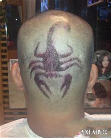 男式雕刻发型第三款,喜欢蝎子的你,不妨就这样简单的在寸头发型上,雕刻成一个蝎子形状,走在大街上,回头率怎么不百分之百。