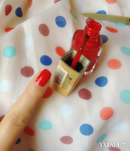 Step3:接着涂抹上大红色的指甲油,为了更好看和浑厚一些,一定要涂抹上两层。