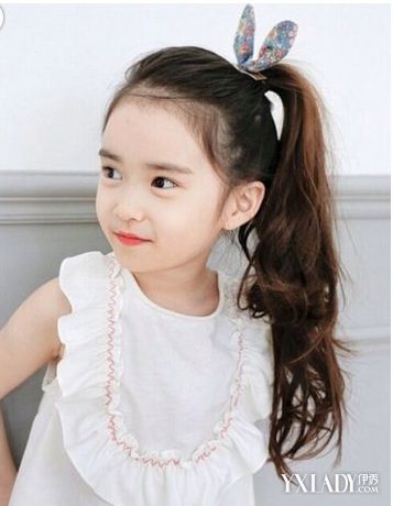 头发是长发的小学女生们,活力girl的标准装扮当然是一款好看的马尾辫扎发发型了,无刘海的侧扎卷发马尾辫款式,兔耳样式的发夹固定在马尾辫扎发的发根位置,无刘海更阳光。