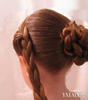 步骤11、弄好发髻后,我们再返回来弄刘海,将前面留下的刘海分成3股编麻花辫;