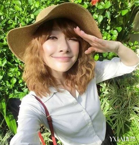 短发的基础中经过烫发的处理,打造出大波浪的线条美感,绝对的蓬松度,融入亚麻色染发,带出潮流的冲击感,斜刘海装扮上大片草帽,尽显清新甜美范!