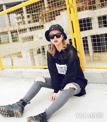 发型点评:很帅气的一款中短发烫发发型,发尾烫出外翘动感的造型,黄金色的染发发色超显MM白皙的肌肤,搭配上黑色圆帽和黑色墨镜衬托这款中短烫发发型,很帅气的妹纸!