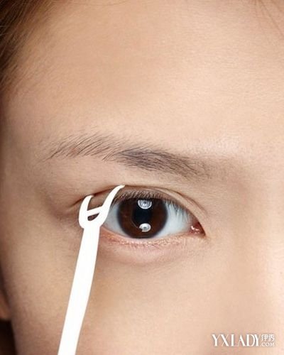 这一步我们终于是需要用到Y形棒了。我们把Y形棒放在刚刚手压住的睫毛,并且是眼睛睁开后的位置,进行了轻轻的向上戳起后,睁开眼睛,完美的双眼皮线就完成了。