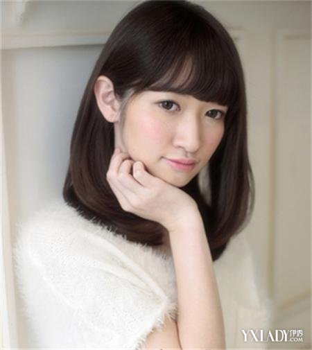 简约的中长发设计,将发尾微微烫成内扣,营造出甜美的气质,轻盈的齐刘海也凸显出小巧的五官,显得非常的清新甜美,没有经过染色的头发也显得自然大方。