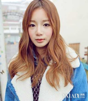 中分刘海,两颊自然卷的发尾,有修饰脸型效果,看上去很美哦!棕黄色的发色衬托着脸颊很白皙。
