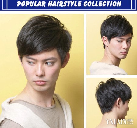 这款发型的斜短刘海露出额头,侧分的头发统一烫向右侧,有纹理而整齐,非常干练,也让男生看起来非常英气,这款发型适合各种脸型的男生哦!