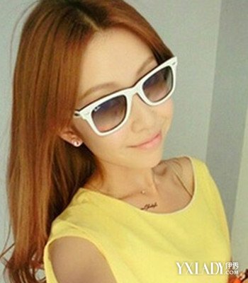 挑染出好看的棕黄发色,是这款中长发型的时尚看点,碎薄的头发修剪再融入卷发来造型,相当清爽显气质,酷酷的白色墨镜,个性御姐范。