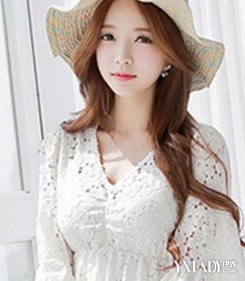 同样温婉的中长卷发发型,气质的中分与帽子的点缀勾勒出别致的时尚感来,长卷发自然有气质感,整个造型优雅有气质。