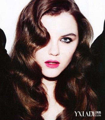 点评:很有欧美性感美的一款烫发发型,搭配深棕色的染发,很时尚有范儿,S型弧度的卷发处理,完美展现出女生的妩媚!