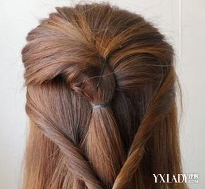 步骤六:将两束头发在后脑勺处交叉合并。