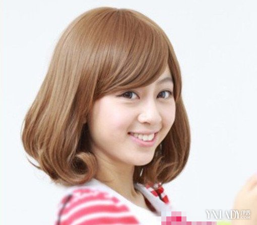 大脸必备发型,不对称发型形成一款厚重的斜刘海发型 。微微向内卷但是不失层次感。开心的表情是显出别样的气质。